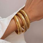 A nossa pulseira com nervuras é perfeita para tornar qualquer roupa especial! Eleve a sua roupa de pulso com a Pulseira canelada, requintadamente banhada a ouro de 14k. Esta pulseira sofisticada apresenta um design único com nervuras, acrescentando textura e elegância a qualquer conjunto. Perfeita para qualquer ocasião, oferece uma mistura de estilo moderno.