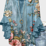 Alberte | A blusa azul claro irradia uma leve elegância nórdica e um orgulho artesanal que fala à guarda-roupa consciente. A silhueta arejada e o romântico padrão floral testemunham materiais de alta qualidade e costuras cuidadosamente elaboradas. O corte relaxado proporciona conforto diário sem comprometer o estilo, e a coleção limitada torna esta criação um investimento especialmente selecionado. As bordas em camadas nas mangas acrescentam movimento e requinte, enquanto a estética atemporal assegura uma longa durabilidade no guarda-roupa. Costurada em uma oficina nórdica, onde a tradição encontra o design moderno.