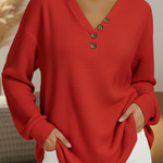 Mantenha-se quente, mesmo quando as temperaturas caem para 5 graus, com o nosso luxuoso suéter feminino – feito de um tecido waffle pesado e de dupla camada, que proporciona uma sensação incrivelmente suave e quente. O interior é especialmente aconchegante e sente-se como fleece na pele, para que você possa desfrutar do máximo conforto em dias frios.