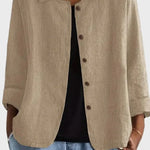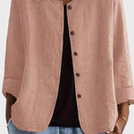 • Design e estilo: Colarinho clássico, frente minimalista e mangas 3/4 criam uma silhueta atemporal que pode ser facilmente combinada com jeans, saia ou calças.