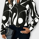 Cecilie | A Blusa Elegante combina a finesse clássica com detalhes modernos e apresenta claramente a marca de um cuidadoso artesanato e escolha de materiais. O poliéster leve proporciona uma silhueta confortável em um fundo bege com um marcante padrão geométrico preto, que adiciona profundidade e estrutura. A decote em V e as mangas longas criam uma silhueta atemporal e versátil, que se adapta tanto a looks do dia a dia quanto a ocasiões especiais. A interação entre leveza e construção robusta oferece uma sensação premium e um investimento em guarda-roupa com apelo intemporal, que continua a manter seu valor.