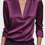 A camisa Ida | Camisa de cetim exala luxo requintado através do cetim de alta qualidade e um sofisticado decote em V. A superfície sedosa é confortável na pele e garante conforto ao longo do dia. A camisa é criada com um cuidadoso artesanato e atenção à origem: materiais selecionados, costuras discretas e um brilho que se mantém através das estações. Oferece um valor intemporal e um apelo colecionável – uma peça que pode ser suavizada ou realçada dependendo da ocasião. Com um corte leve e respirável, é tanto descontraída quanto estruturada, perfeita sob um blazer ou sozinha nos meses quentes.