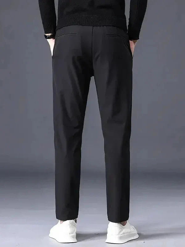 Noah™ | Calças Elásticas une a elegância atemporal ao conforto moderno. Fabricadas em tecido elástico premium e equipadas com detalhes Leviana, estas calças oferecem um ajuste sublime e conforto diário sem comprometer o estilo. O artesanato, os materiais e a disponibilidade limitada sinalizam exclusividade e valor duradouro — uma peça que pode tornar-se uma rara fonte de apelo para colecionadores no guarda-roupa.