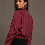 • Silhueta curta e estruturada assenta na cintura, criando um perfil moderno e controlado.