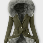 • Capuz com borda de pele sintética acrescenta requinte e proteção extra contra o frio.