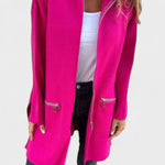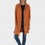 O elegante fecho frontal e o capuz criam um visual intemporal com um toque moderno, que pode ser facilmente estilizado para qualquer ocasião.