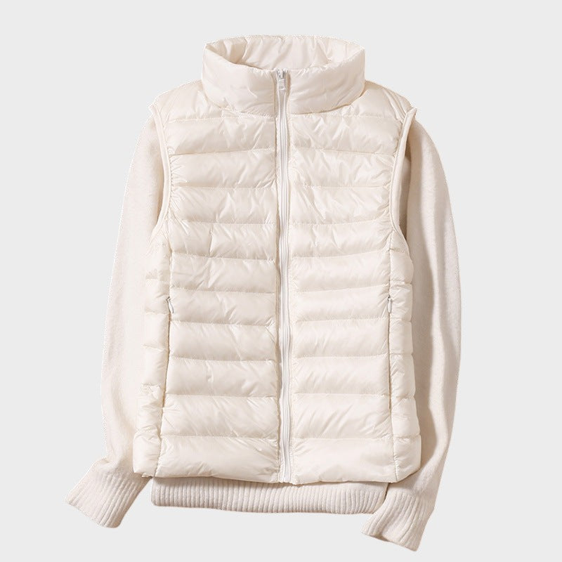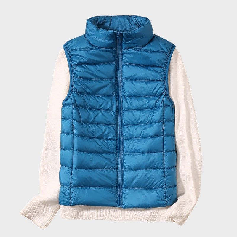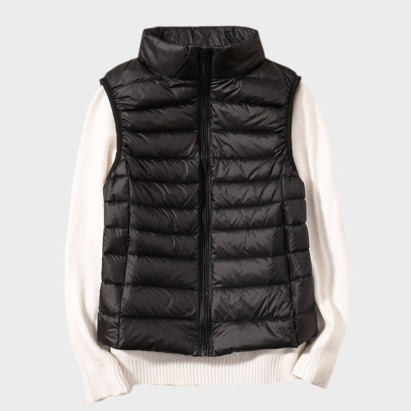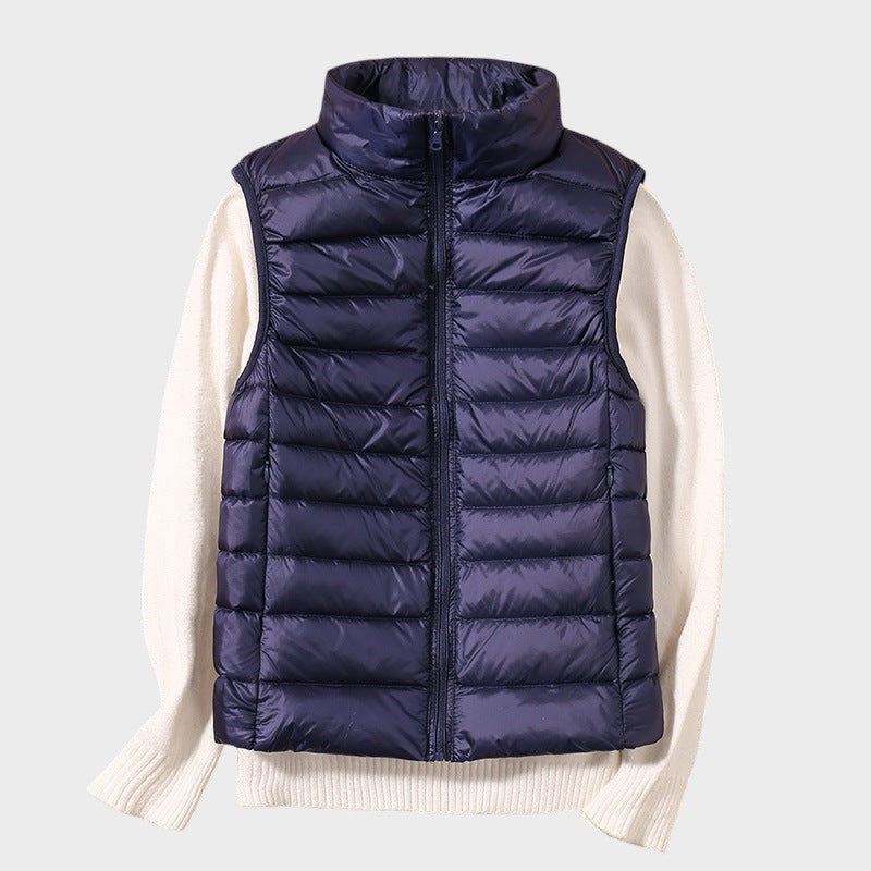 Este colete acolchoado foi criado para oferecer o equilíbrio perfeito entre conforto e funcionalidade. O seu design moderno adapta-se facilmente a diferentes estilos, sendo perfeito para usar por cima de camisolas, camisas ou até casacos leves.