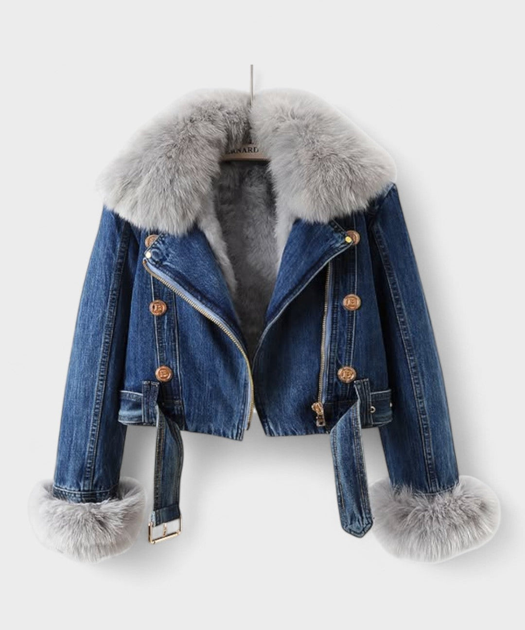 Thyra™ | Casaco de Denim com Forro de Pele Sintética