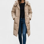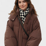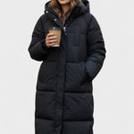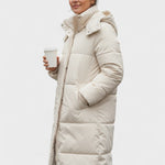 O corte alongado com silhueta suavemente moldada e capuz prático proporciona uma expressão moderna, enquanto o material acolchoado e macio garante calor e liberdade de movimento em qualquer situação.