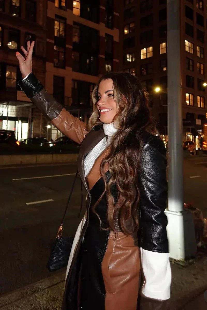 Solveig | Trenchcoat em Patchwork combina o clássico trench com um patchwork contrastante em castanho, preto e branco. O corte estrutural e a silhueta definida ressaltam a cintura e adicionam tanto força quanto requinte a um guarda-roupa urbano. O artesanato e a atenção aos detalhes refletem uma qualidade atemporal, enquanto a impressão gráfica do patchwork oferece uma expressão contemporânea sem comprometer a herança e a expertise. Produzido em quantidade limitada, Solveig destaca-se como uma clara peça de colecionador e um investimento em elegância duradoura.