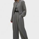 Aritzia | Conjunto de Bustier representa um equilíbrio sofisticado entre a elegância clássica e o estilo moderno. O conjunto combina um macacão de pernas largas, um bustier estruturado e um casaco solto correspondente, que juntos criam uma silhueta intemporal e um toque evidente de artesanato e qualidade dos materiais. Cada peça é um testemunho da atenção aos detalhes e oferece um investimento em estilo e conforto que resiste ao tempo e proporciona confiança a cada passo. A combinação de conforto e contorno faz com que seja ideal do escritório ao jantar, mantendo uma expressão exclusiva através das estações.