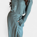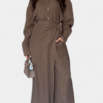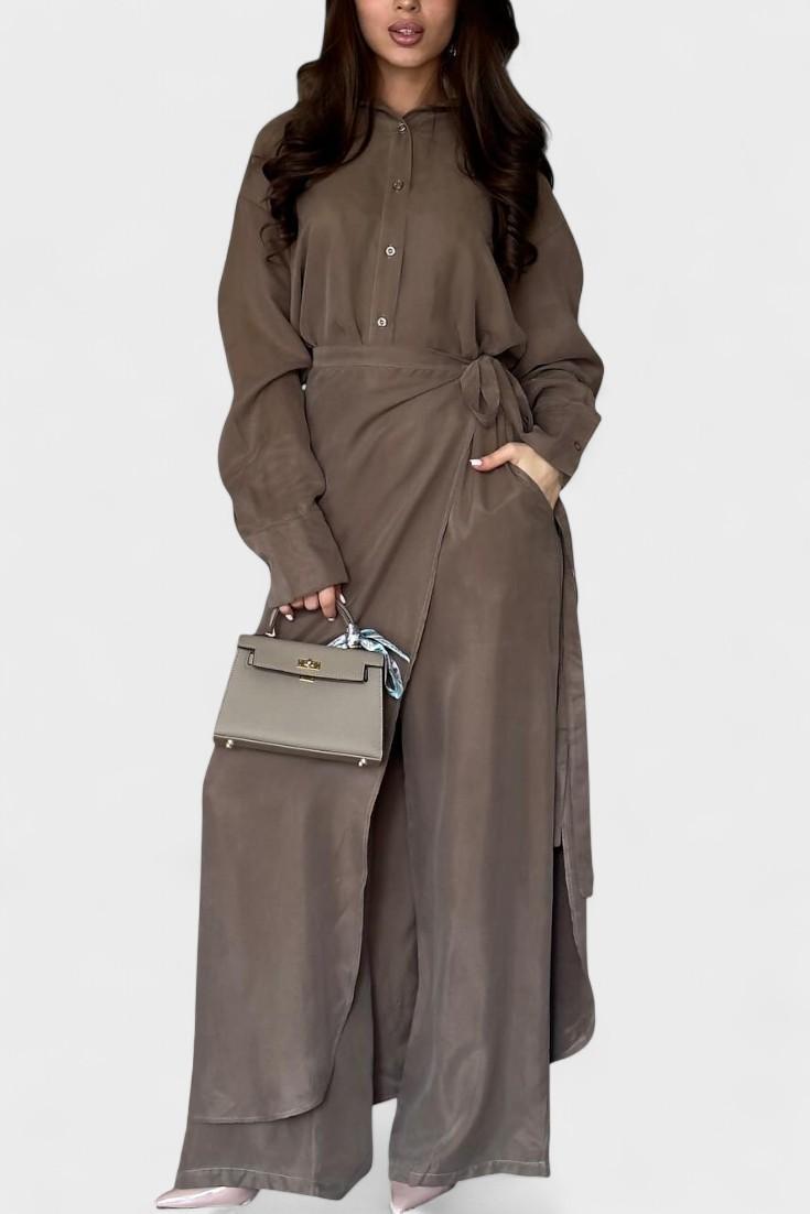 Ida | Conjunto de Manga Longa é uma homenagem ao artesanato e à prestígio discreto. A camisa solta e as calças com corte semelhante a um vestido do conjunto proporcionam liberdade de movimento e uma leve elegância sem comprometer a silhueta. Fabricado com cuidado e materiais de alta qualidade, Ida reflete uma estética intemporal e um valor duradouro que atrai colecionadores e compradores conscientes. A disponibilidade limitada torna Ida um elemento exclusivo no guarda-roupa, onde cada detalhe fala de qualidade. O tecido suave cai naturalmente e acompanha os movimentos sem forçar; a silhueta mantém-se esguia sem elástico. A palete neutra confere a Ida um apelo intemporal e uma fácil combinação de estilos desde a primavera até o outono, tanto para looks diários como para ocasiões à noite. O conjunto expressa um legado de cortes cuidadosos e materiais que unem a elegância clássica ao conforto moderno. Como prova de valor a longo prazo, Ida foi projetada para manter-se relevante ano após ano.