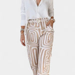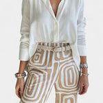 Kirstine | Conjunto irradia luxo moderno, onde o conforto bem equilibrado encontra a flexibilidade do dia-a-dia. A parte superior leve com um colarinho ligeiramente estruturado e as calças combinantes criam uma silhueta subtil e elegante, adequada para qualquer ocasião – desde relaxar em casa até viajar e o estilo discreto da cidade. Por trás de Kirstine está o artesanato e a consideração: cada ponto é feito com precisão, e os materiais são escolhidos para garantir durabilidade e um estilo que perdura. O conjunto expressa verdadeira atemporalidade e uma disponibilidade consciente e limitada, que colecionadores e fashionistas apreciam.