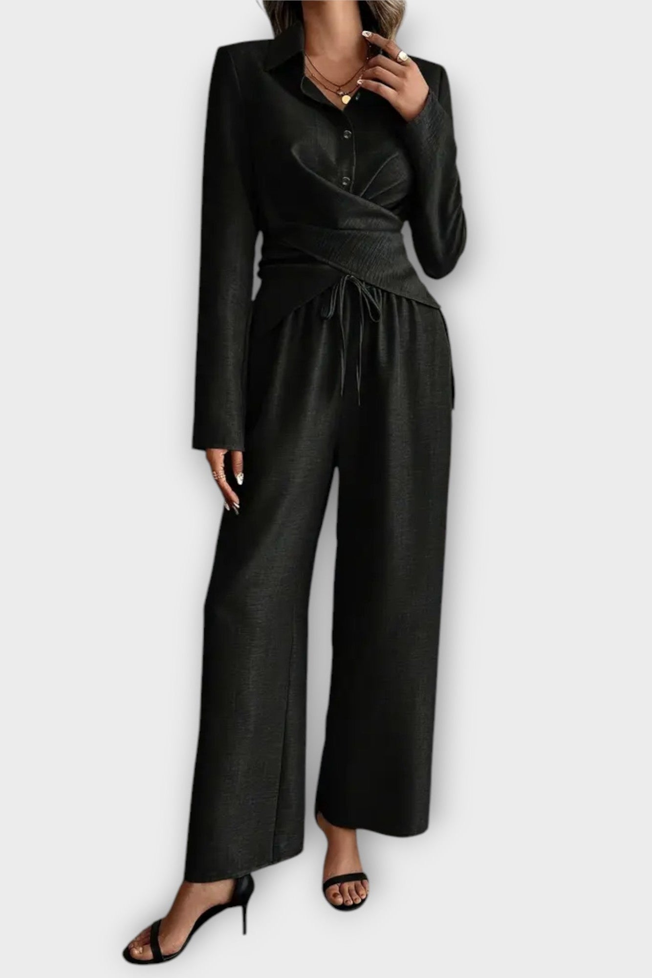 Descubra Liv | Conjunto de Manga Longa, um conjunto sofisticado para a primavera e o verão, que une a elegância atemporal ao conforto descontraído. O artesanato é claramente expresso no corte limpo e minimalista e na elegante laço amarrado, que adiciona personalidade sem exageros. O tom bege torna o conjunto fácil de combinar tanto para o escritório quanto para eventos sociais. O ajuste descontraído e as calças de perna larga proporcionam liberdade de movimento e uma silhueta lisonjeira ao longo do dia. Produzido em uma edição limitada, o que sublinha a exclusividade, o valor atemporal e o apelo de colecionador. O design de Lívia e o legado de Lívia são expressos nos materiais e detalhes que sinalizam consideração e qualidade.