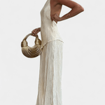 • Material: Tecido plissado com brilho discreto e uma sensação suave, que acompanha o corpo e oferece uma textura sofisticada.