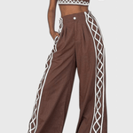 Mirella | Conjunto de Malou une design moderno com a precisão do artesanato. Cada peça é confeccionada em uma leve mistura de algodão e apresenta um marcante padrão zig-zag e um corte assimétrico, o que confere uma silhueta atemporal e sofisticada. A produção limitada torna o conjunto um verdadeiro objeto de coleção e uma referência ao luxo moderno sem ser exagerado. A liberdade de movimento e o conforto são o foco para o dia a dia e para a noite; a leveza do tecido e as pernas largas criam equilíbrio, enquanto a assimetria do top adiciona caráter. Mirella | Conjunto é atemporal e versátil—fácil de estilizar para qualquer ocasião, desde passeios ensolarados até jantares memoráveis.