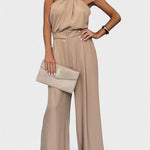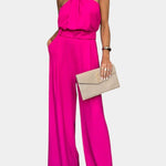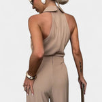 • Decote halter e silhueta drapeada – O decote halter realça os ombros, enquanto o drapeado solto cria liberdade de movimento e uma proporção lisonjeira e atemporal.