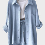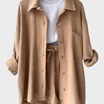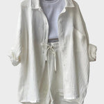 Astrid | Conjunto de Verão representa uma assinatura intemporal da nossa coleção. Este conjunto leve é composto por uma camisa leve e calções combináveis, desenhados para dias quentes, onde a respirabilidade e o conforto estão em primeiro plano. O artesanato reflete herança e proveniência através de cortes limpos, costuras precisas e detalhes subtis. Com uma produção limitada, é mais do que roupa – é um investimento em valor duradouro e uma sensação de prestígio no guarda-roupa de verão.