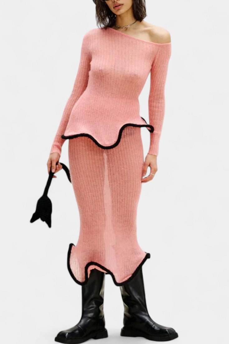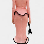 Emma | Stormi de Manga Longa é uma composição sofisticada que une feminilidade e ousadia numa elegante e direta harmonia. A parte superior em malha canelada beija um ombro, enquanto a saia midi semi-transparente cria uma silhueta lúdica e refinada. Cada material e cada costura testemunham a precisão e o cuidado do artesanato; um acabamento espelhado discreto adiciona um brilho refinado e fala sobre a história de origem do modelo e sua qualidade intemporal. O tom rosa acrescenta calor e modernidade, e Stormi aparece como um objeto intemporal para o guarda-roupa consciente e para colecionadores que buscam peças raras e bem elaboradas. Com uma edição limitada e materiais selecionados, Stormi representa um valor de investimento que fala ao estilo moderno através das estações e dos anos.