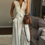 • Destaque no corte: A realce da cintura do colete combina-se com a linha longa e reta das calças para uma forma refinada e estruturada que se adapta ao movimento.