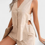 Linho | Conjunto une uma silhueta descontraída e sofisticada com a frescura natural do linho. A parte superior justa com decote em V e botões confere um aspeto arrumado e elegante, enquanto os calções com cintura elástica garantem liberdade de movimento. O linho leve e texturizado reflete artesanato e qualidade, e o conjunto emana uma elegância tranquila e intemporal inspirada em Loren. Com fibras naturais e um acabamento durável, o Linho | Conjunto é um investimento no guarda-roupa de verão—um conjunto que se adapta a dias ensolarados, brunches e passeios pela cidade sem comprometer o conforto. O linho premium em qualidade leve e texturizada traz a natureza para o seu guarda-roupa e promete longa durabilidade. A estética inspirada em Loren exala uma elegância tranquila, intemporal e um acabamento artesanal. Disponibilidade limitada — um verdadeiro investimento no guarda-roupa de verão com durabilidade.