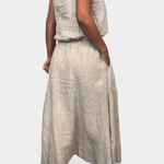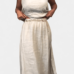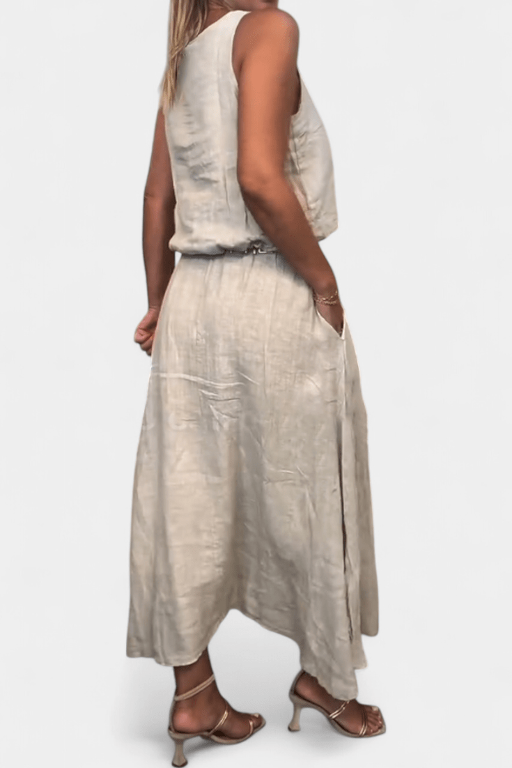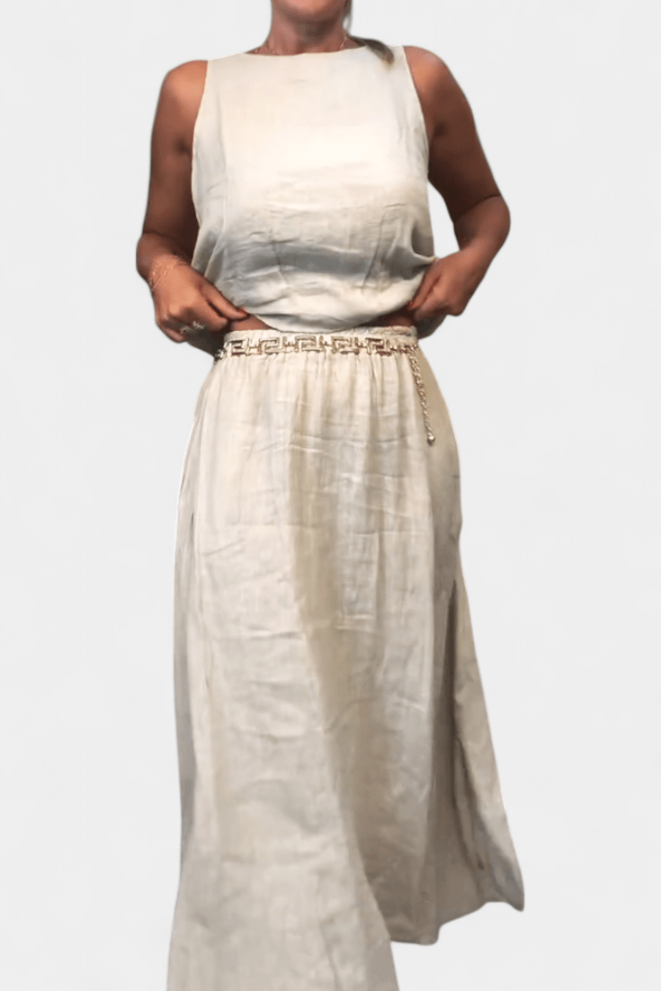 Meliora | Conjunto emana uma elegância intemporal e um luxo discreto que fala ao valor duradouro. O conjunto une a essência do verão numa silhueta descontraída, mas sofisticada, composta por um colete solto sem mangas e uma saia longa drapeada com bolsos laterais. O tecido de linho e algodão respira e desenvolve um brilho natural ao longo do tempo, enquanto o artesanato e a origem refletem-se claramente em cada detalhe. A produção é realizada em pequenas quantidades com precisão e cuidado, o que sublinha a exclusividade e a durabilidade do conjunto. Meliora | Conjunto oferece um visual de verão intemporal com valor duradouro e valor de colecionador—ideal para praia, cidade e eventos sociais, e fácil de combinar para um estilo sofisticado e estético. O conjunto 'Meliora | Conjunto' é, portanto, não apenas uma peça de vestuário, mas um investimento em artesanato intemporal que proporciona prazer estação após estação.