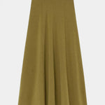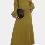 • Silhueta e corte – A parte de cima tem gola alta e mangas longas com aberturas laterais; a saia maxi acompanha cintura moldada e caimento leve.