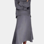 Patricia | Conjunto é uma interpretação sofisticada do minimalismo moderno, onde o artesanato encontra a elegância intemporal. A parte de cima apresenta uma gola alta e mangas longas com aberturas laterais em malha estruturada de luxo, enquanto a parte superior de malha canelada solta acrescenta profundidade e um toque contemporâneo. A saia maxi com cintura moldada e caimento leve cria uma silhueta equilibrada, que funciona tanto para o escritório como para a noite. O conjunto irradia exclusividade através de materiais de qualidade e atenção aos detalhes, oferecendo um apelo duradouro e amigo dos colecionadores na seleção limitada da temporada.
