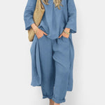 Pernille | O conjunto de manga longa exala tranquilidade e elegância refinada. A artesania encontra materiais de primeira qualidade num corte leve e respirável, que proporciona liberdade de movimento sem comprometer o estilo. O design espaçoso e a construção cuidada conferem uma qualidade moderna e descomplicada, adequada para caminhadas, viagens e reuniões – e que continua a ser um investimento intemporal. Disponível em número limitado, o que sublinha a natureza exclusiva do conjunto e a sua apelo duradouro.