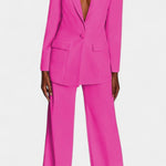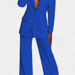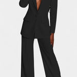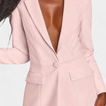 • Blazer de botão único com decote em V profundo e ombros marcados proporciona uma silhueta sofisticada e uma elegância atemporal.