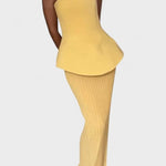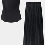 Thea | Conjunto exala elegância sofisticada, onde o artesanato encontra o luxo intemporal. O top bandeau sem alças destaca o pescoço e o decote com linhas limpas, enquanto a saia ligeiramente plissada acompanha os movimentos do corpo com um toque suave. Thea cria uma silhueta levantada e descontraída, perfeita para férias ensolaradas, jantares e looks diurnos elegantes, e o ajuste perfeito confere uma confiança natural. Com artesanato e materiais de alta qualidade, a estrutura e a elegância são mantidas ao longo do tempo, tornando o conjunto um investimento duradouro no guarda-roupa e no legado do estilo. A quantidade limitada e a linha intemporal sublinham o prestígio de Thea e criam um potencial valor de colecionador ao longo das estações. Esta combinação de detalhes torna Thea um investimento atemporal que pode ser combinado com outras peças e manter a sua aparência refinada estação após estação.