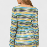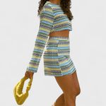 • Detalhes artesanais no top de crochê sinalizam cuidado e qualidade.