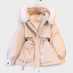 A silhueta feminina e os detalhes limpos sinalizam prestígio de forma discreta, enquanto o forro totalmente acolchoado mantém o calor e o conforto sem se sentir pesado.