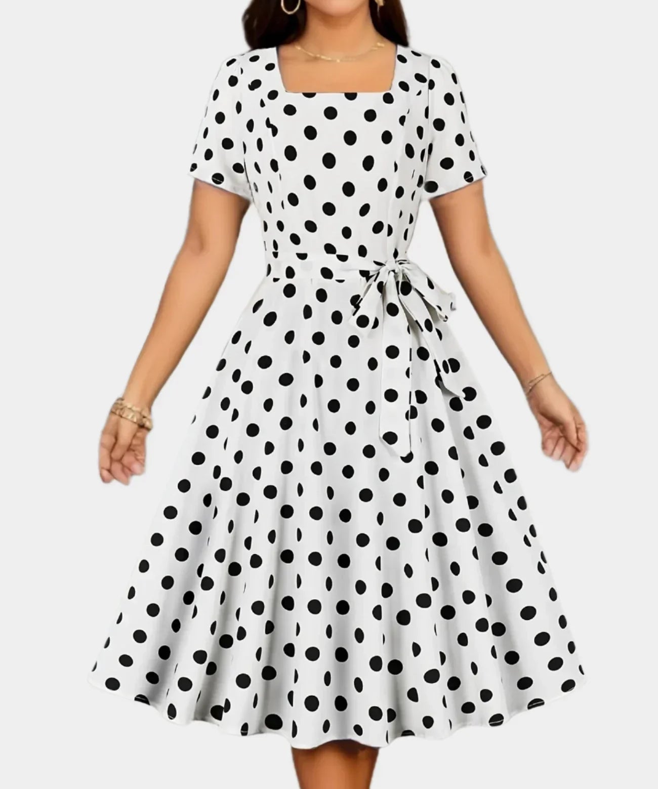 Vestido Retro com Poás e Decote Quadrado