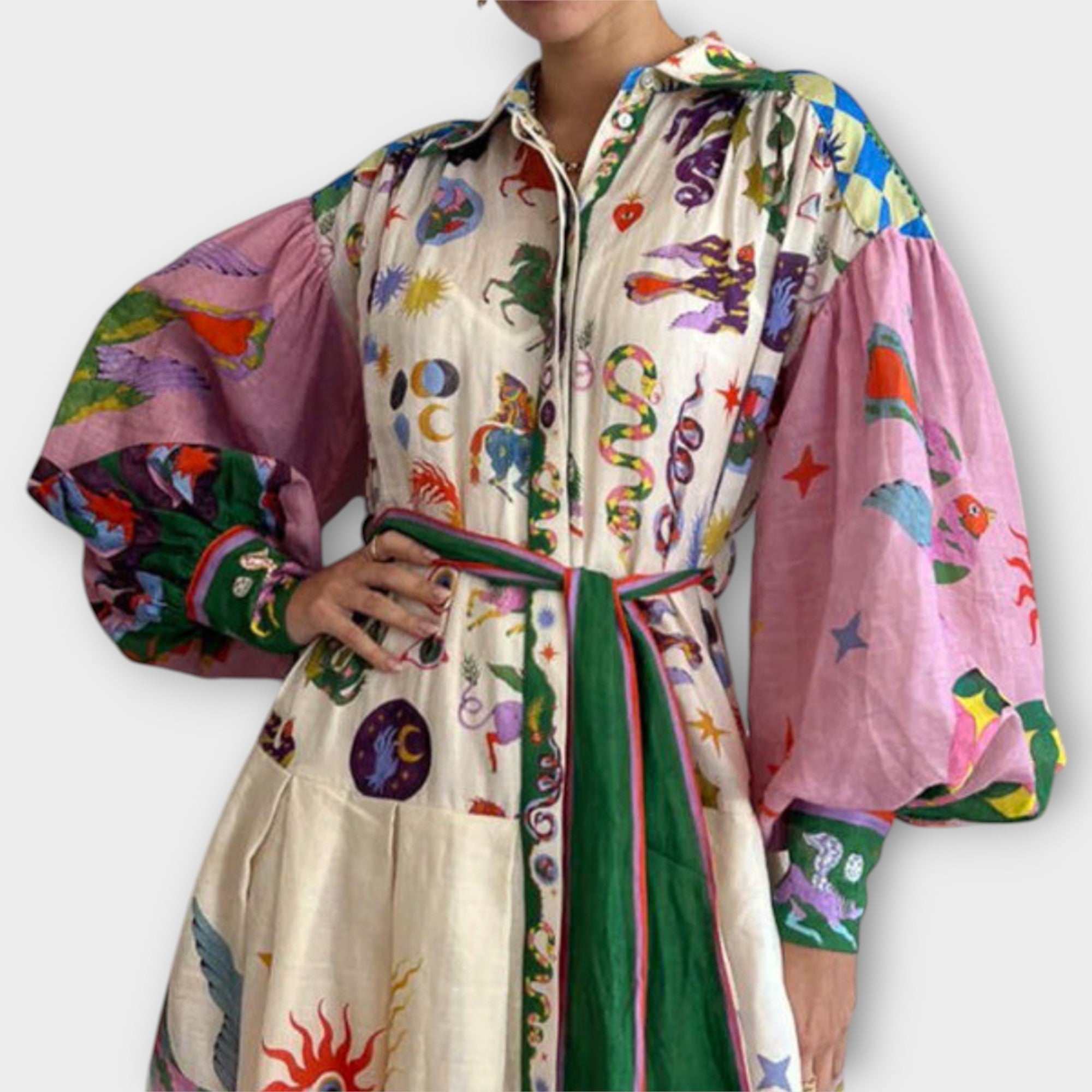 • Mangas bufantes largas: Conferem volume e carácter ao conjunto.