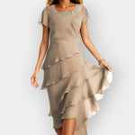 Descubra a elegância com este vestido, feito de camadas leves de chiffon que oferecem luxo discreto e conforto. Ideal para ocasiões noturnas e eventos especiais, este vestido combina estilo e praticidade.