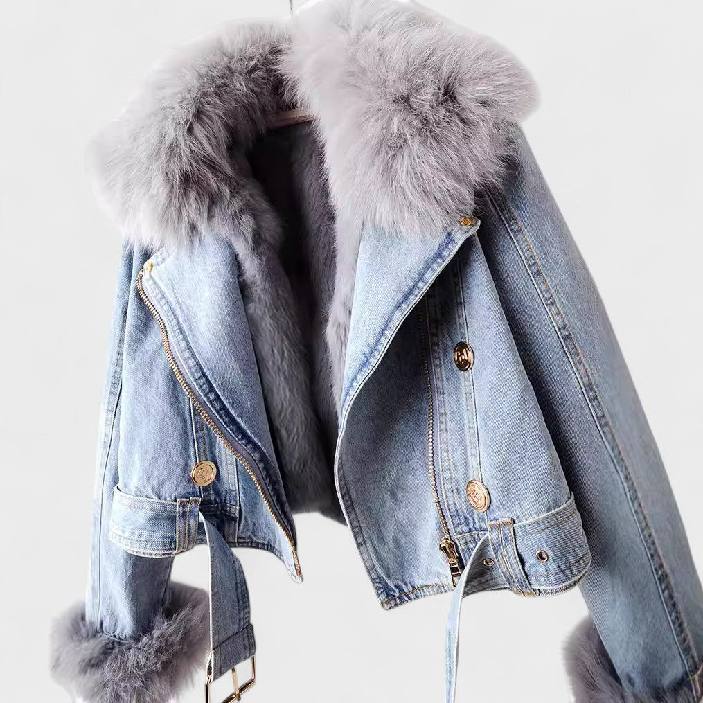 Uma peça que combina o charme intemporal com o conforto moderno. Esta jaqueta une o toque urbano do design em ganga ao luxo do forro macio, criando um equilíbrio perfeito entre ousadia e elegância.