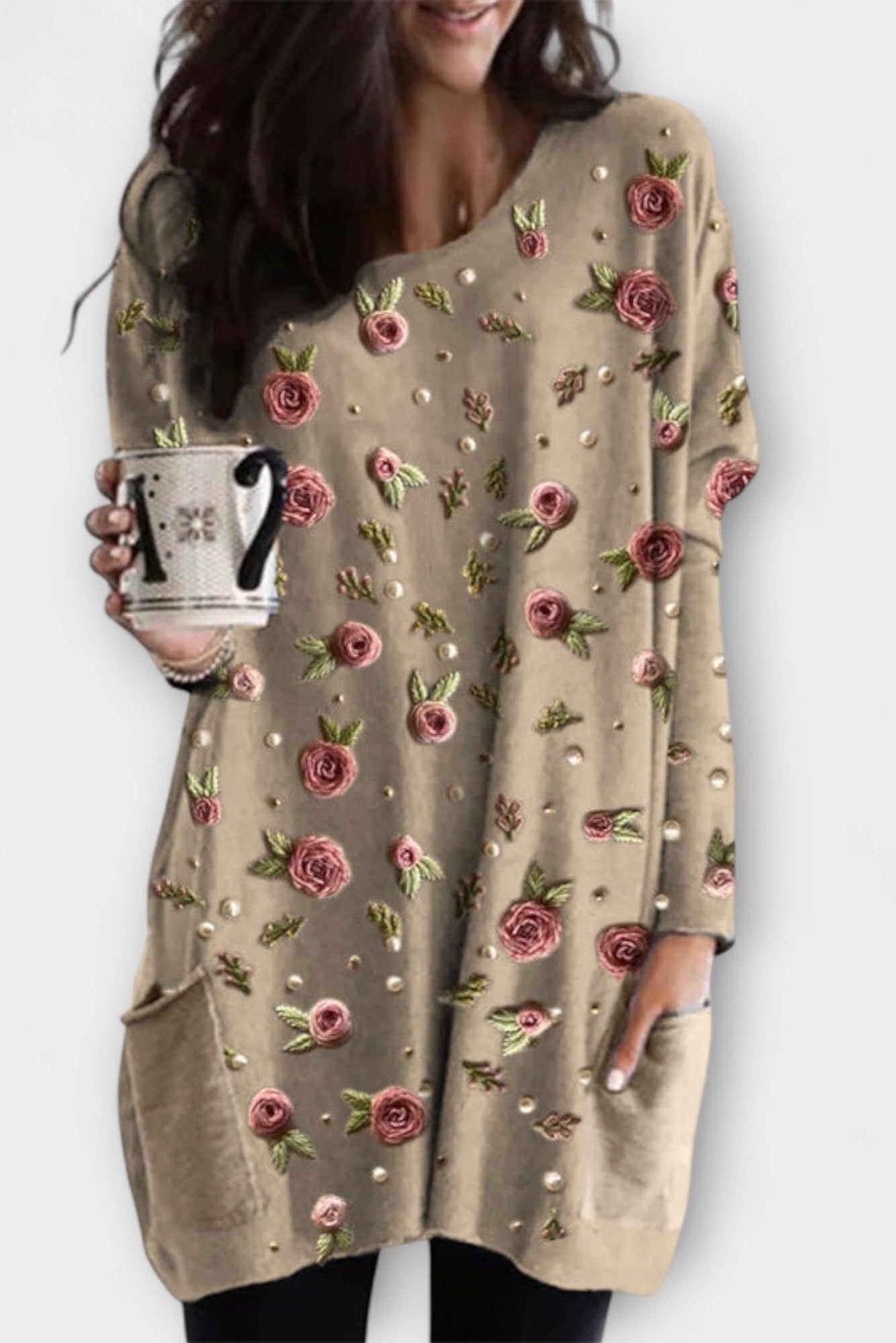 Leila | Top exala elegância intemporal e artesanato numa silhueta suave e descontraída. O delicado padrão de rosas combinado com pérolas discretas cria uma expressão sofisticada, quase feita à mão, que eleva o dia-a-dia a algo especial. O drapeado leve e os cortes precisos conferem uma forma descontraída, mas chique, ideal para um brunch ou um passeio pela cidade. Leila | Top é fabricado com atenção à origem e a materiais de alta qualidade, garantindo durabilidade e um apelo intemporal. Cada detalhe é um testemunho do cuidadoso artesanato, enquanto a produção limitada mantém a exclusividade em torno do top Leila.