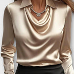 A Blusa de Cetim Ronja irradia uma leveza luxuosa e uma imediata sensação de qualidade. O brilho do cetim repousa discretamente sobre a pele, criando um brilho natural, enquanto o decote ligeiramente plissado e a gola clássica equilibram o requinte e o conforto numa silhueta intemporal. É cuidadosamente concebida com foco na artesania e em materiais da mais alta qualidade, proporcionando durabilidade e uma sensação de suavidade sedosa. Como uma base versátil para o guarda-roupa, a Blusa de Cetim Ronja é adequada para o escritório, um jantar elegante ou eventos especiais. A sua fácil combinação com saias, calças ou jeans torna-a uma escolha moderna e intemporal que resiste às tendências e atrai aqueles que apreciam design de qualidade.