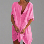 Descubra o vestido de verão ideal! O nosso popular vestido em algodão-linho é a escolha perfeita para dias quentes – leve, confortável e elegante.